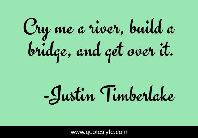 This page presents the quote "Cry me a river, build a bridge, and get over it.". Author of this quote is Justin Timberlake. This quote is about sympathy, moving-on,.