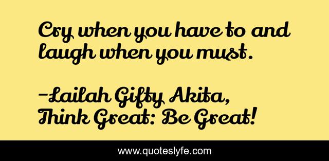 "Lailah Gifty Akita, Think Great: Be Great! Quotes." Quoteslyfe.com, 2025. Sat. 06 Dec. 2025. <https://www.quoteslyfe.com/quote/Cry-when-you-have-to-and-laugh-94951>.