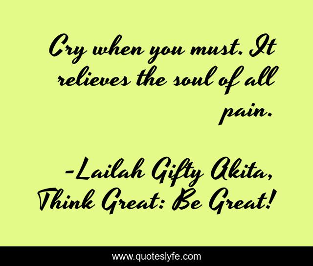 "Lailah Gifty Akita, Think Great: Be Great! Quotes." Quoteslyfe.com, 2025. Fri. 05 Dec. 2025. <https://www.quoteslyfe.com/quote/Cry-when-you-must-It-relieves-the-63685>.