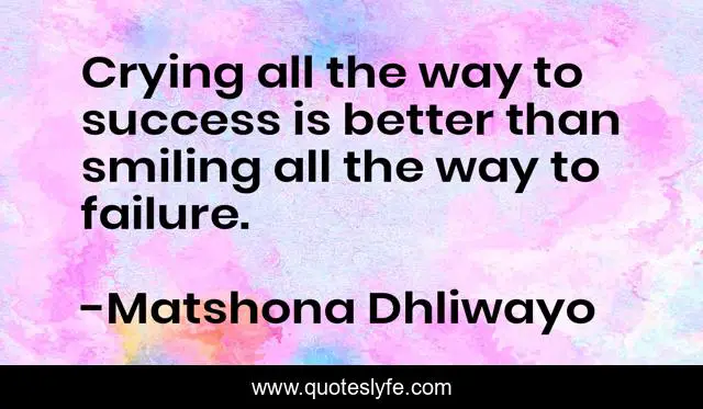 "Matshona Dhliwayo Quotes." Quoteslyfe.com, 2025. Fri. 05 Dec. 2025. <https://www.quoteslyfe.com/quote/Crying-all-the-way-to-success-is-109309>.