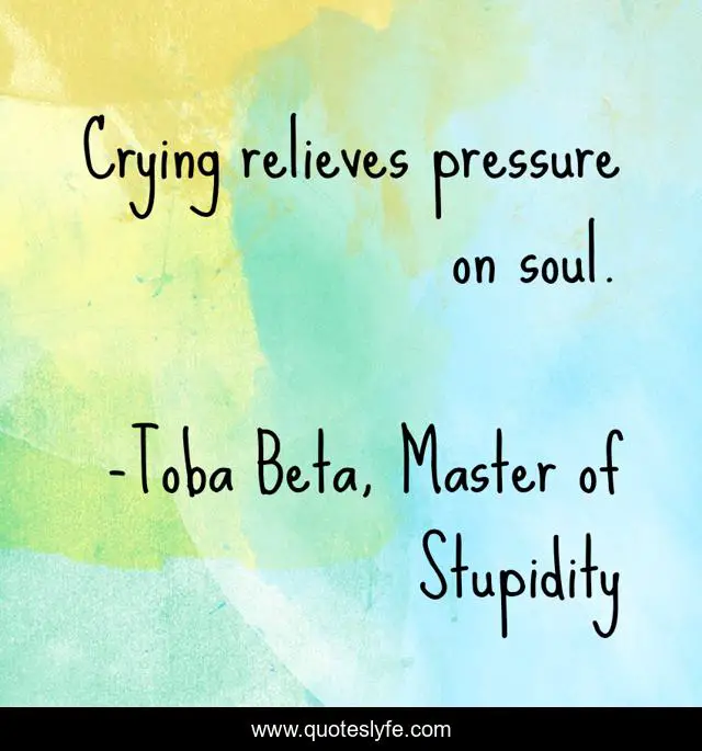 "Toba Beta, Master of Stupidity Quotes." Quoteslyfe.com, 2025. Sat. 06 Dec. 2025. <https://www.quoteslyfe.com/quote/Crying-relieves-pressure-on-soul-62691>.