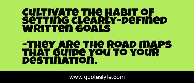 This page presents the quote "Cultivate the habit of setting clearly-defined written goals". Author of this quote is they are the road maps that guide you to your destination.. .