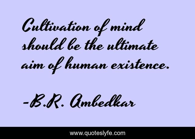 This page presents the quote "Cultivation of mind should be the ultimate aim of human existence.". Author of this quote is B.R. Ambedkar. This quote is about humanity-and-society, salvation,.