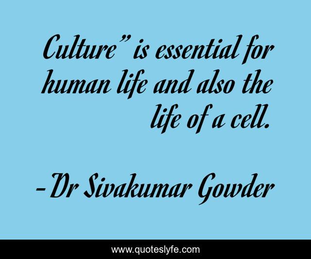 This page presents the quote "Culture” is essential for human life and also the life of a cell.". Author of this quote is Dr Sivakumar Gowder. .