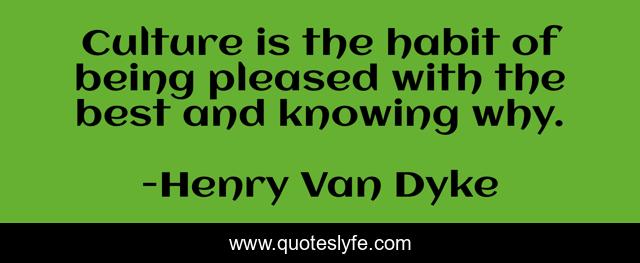 This page presents the quote "Culture is the habit of being pleased with the best and knowing why.". Author of this quote is Henry Van Dyke. This quote is about knowing, culture, why,.