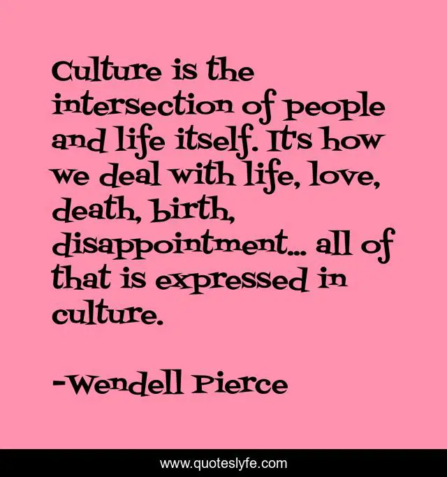 This page presents the quote "Culture is the intersection of people and life itself. It's how we deal with life, love, death, birth, disappointment... all of that is expressed in culture.". Author of this quote is Wendell Pierce. This quote is about culture, life, death,.