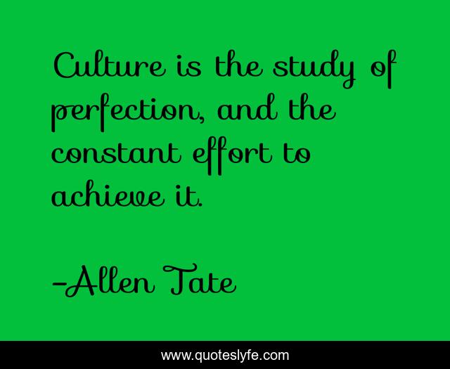 This page presents the quote "Culture is the study of perfection, and the constant effort to achieve it.". Author of this quote is Allen Tate. This quote is about idealism, culture,.