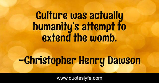 This page presents the quote "Culture was actually humanity’s attempt to extend the womb.". Author of this quote is Christopher Henry Dawson. This quote is about parenthood, culture, legacy, community,.