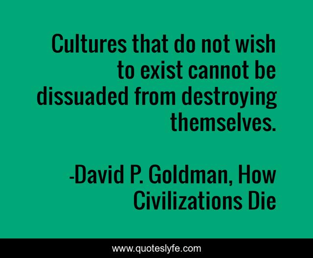 "David P. Goldman, How Civilizations Die Quotes." Quoteslyfe.com, 2025. Sun. 07 Dec. 2025. <https://www.quoteslyfe.com/quote/Cultures-that-do-not-wish-to-exist-187679>.