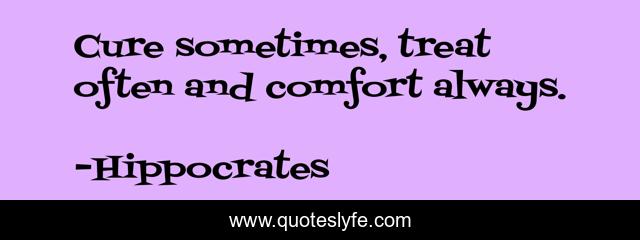 "Hippocrates Quotes." Quoteslyfe.com, 2025. Sat. 06 Dec. 2025. <https://www.quoteslyfe.com/quote/Cure-sometimes-treat-often-and-comfort-always-243201>.