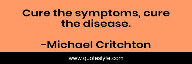This page presents the quote "Cure the symptoms, cure the disease.". Author of this quote is Michael Critchton. This quote is about life, death, true, disease, cancer,.