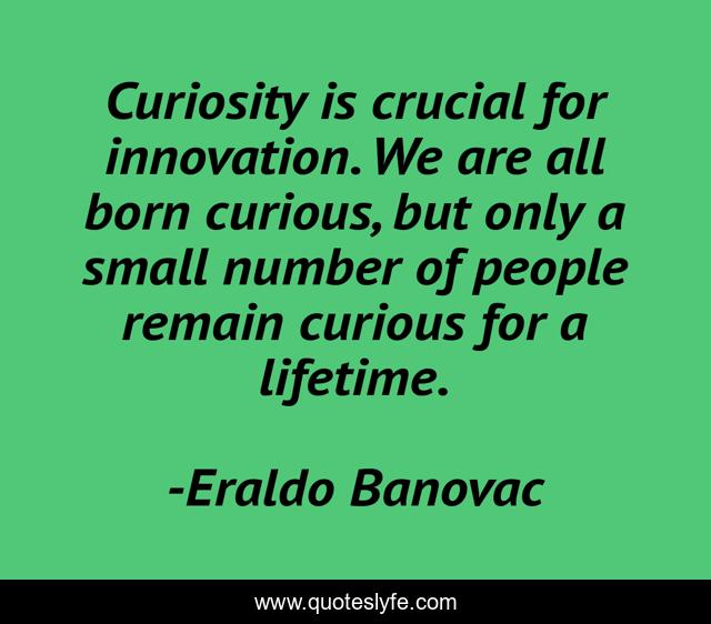 This page presents the quote "Curiosity is crucial for innovation. We are all born curious, but only a small number of people remain curious for a lifetime.". Author of this quote is Eraldo Banovac. This quote is about sociology, philosophy, innovation, curiosity, curious, lifetime, philosophy-of-life,.