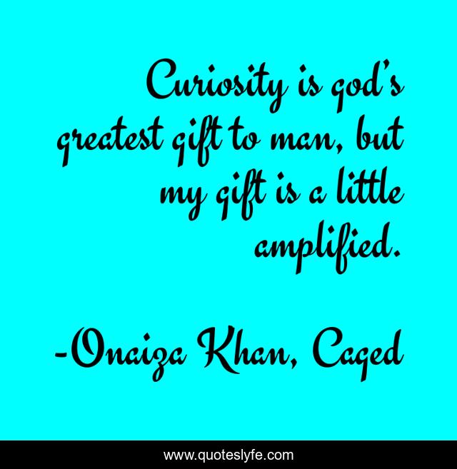 This page presents the quote "Curiosity is god’s greatest gift to man, but my gift is a little amplified.". Author of this quote is Onaiza Khan, Caged. This quote is about enthusiasm, brainy, curiosity, inspirational, philosophy,.