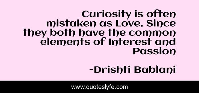 This page presents the quote "Curiosity is often mistaken as Love, Since they both have the common elements of Interest and Passion". Author of this quote is Drishti Bablani. This quote is about love, curiosity, mistaken, passion, interest, affection,.