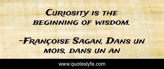 This page presents the quote "Curiosity is the beginning of wisdom.". Author of this quote is Françoise Sagan, Dans un mois, dans un an. This quote is about curiosity, wisdom,.