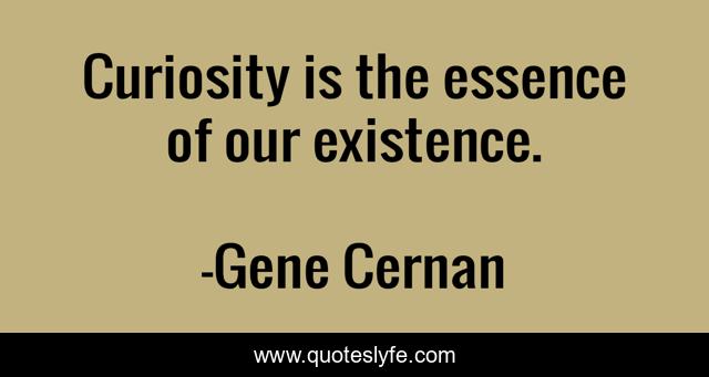 This page presents the quote "Curiosity is the essence of our existence.". Author of this quote is Gene Cernan. This quote is about space, human-nature, astronaut, purpose, curiosity, discovery,.
