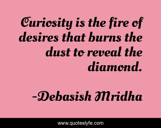 This page presents the quote "Curiosity is the fire of desires that burns the dust to reveal the diamond.". Author of this quote is Debasish Mridha. This quote is about fire-of-desires, curiosity, mridha, debasish, debasish-mridha, inspirational, enthusiasm, philosophy,.