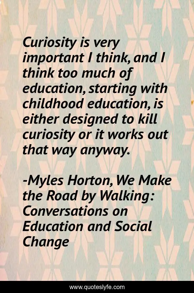 "Myles Horton, We Make the Road by Walking: Conversations on Education and Social Change Quotes." Quoteslyfe.com, 2025. Fri. 05 Dec. 2025. <https://www.quoteslyfe.com/quote/Curiosity-is-very-important-I-think-and-108811>.