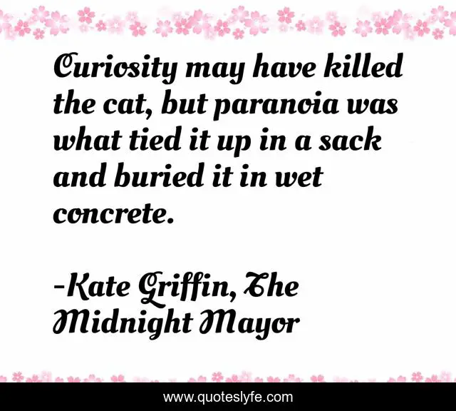 This page presents the quote "Curiosity may have killed the cat, but paranoia was what tied it up in a sack and buried it in wet concrete.". Author of this quote is Kate Griffin, The Midnight Mayor. This quote is about kate-griffin, curiosity, the-midnight-mayor,.