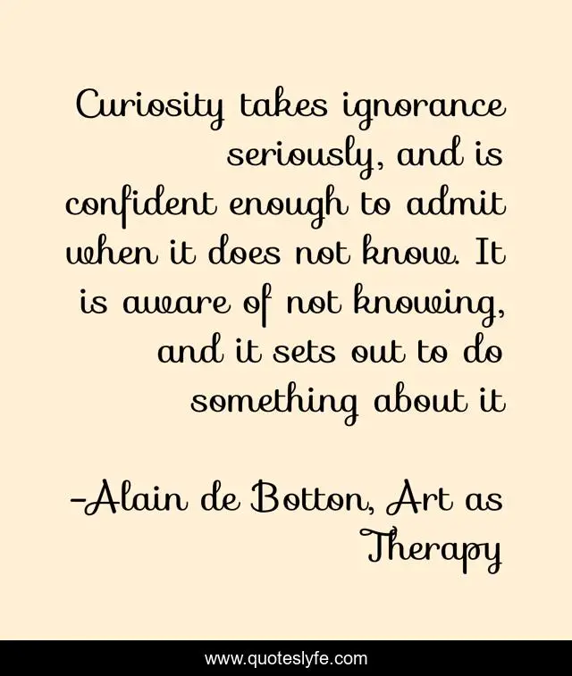 "Alain de Botton, Art as Therapy Quotes." Quoteslyfe.com, 2025. Sat. 06 Dec. 2025. <https://www.quoteslyfe.com/quote/Curiosity-takes-ignorance-seriously-and-is-confident-108300>.
