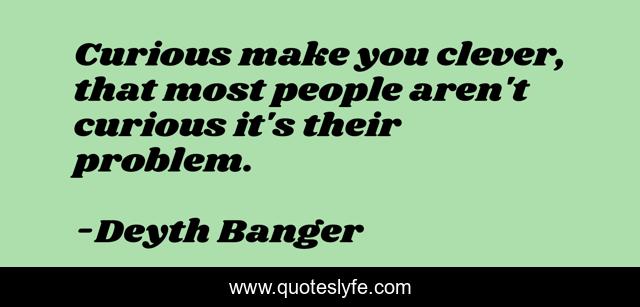 This page presents the quote "Curious make you clever, that most people aren't curious it's their problem.". Author of this quote is Deyth Banger. This quote is about curious, problem, clever, their,.