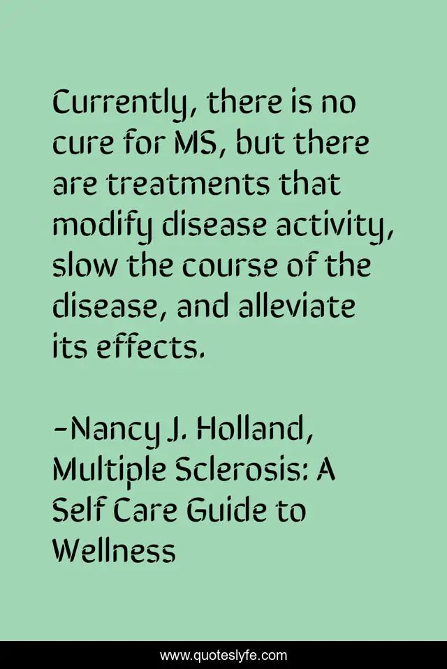 "Nancy J. Holland, Multiple Sclerosis: A Self Care Guide to Wellness Quotes." Quoteslyfe.com, 2025. Sat. 06 Dec. 2025. <https://www.quoteslyfe.com/quote/Currently-there-is-no-cure-for-MS-177117>.