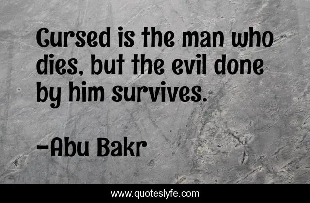 This page presents the quote "Cursed is the man who dies, but the evil done by him survives.". Author of this quote is Abu Bakr. This quote is about done, evil, man,.