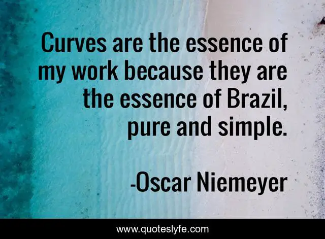 This page presents the quote "Curves are the essence of my work because they are the essence of Brazil, pure and simple.". Author of this quote is Oscar Niemeyer. This quote is about simple, brazil, curves,.
