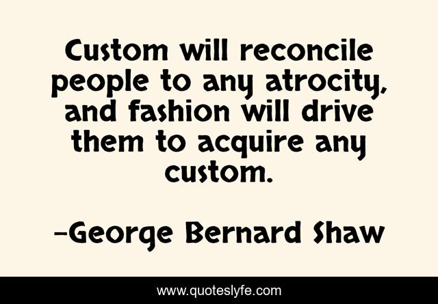 This page presents the quote "Custom will reconcile people to any atrocity, and fashion will drive them to acquire any custom.". Author of this quote is George Bernard Shaw. .