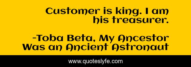 "Toba Beta, My Ancestor Was an Ancient Astronaut Quotes." Quoteslyfe.com, 2025. Sat. 06 Dec. 2025. <https://www.quoteslyfe.com/quote/Customer-is-king-I-am-his-treasurer-79933>.