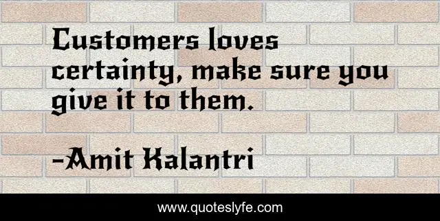 "Amit Kalantri Quotes." Quoteslyfe.com, 2025. Sat. 06 Dec. 2025. <https://www.quoteslyfe.com/quote/Customers-loves-certainty-make-sure-you-give-97766>.