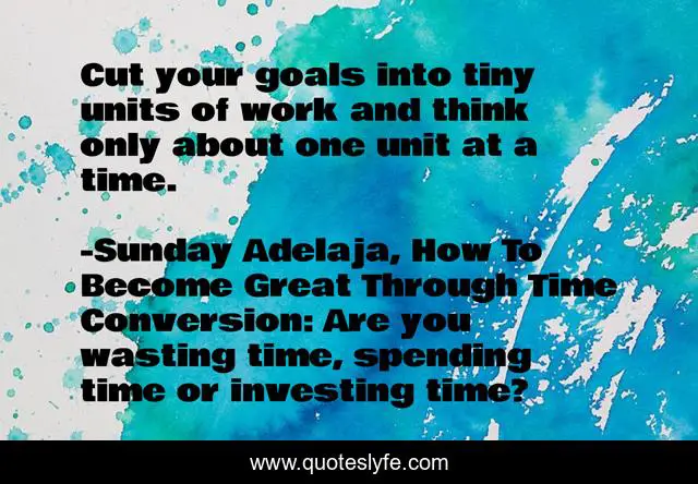 "Sunday Adelaja, How To Become Great Through Time Conversion: Are you wasting time, spending time or investing time? Quotes." Quoteslyfe.com, 2025. Fri. 05 Dec. 2025. <https://www.quoteslyfe.com/quote/Cut-your-goals-into-tiny-units-of-39366>.
