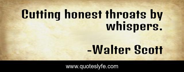 This page presents the quote "Cutting honest throats by whispers.". Author of this quote is Walter Scott. .