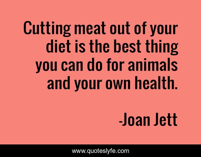 This page presents the quote "Cutting meat out of your diet is the best thing you can do for animals and your own health.". Author of this quote is Joan Jett. This quote is about health, animals, best,.