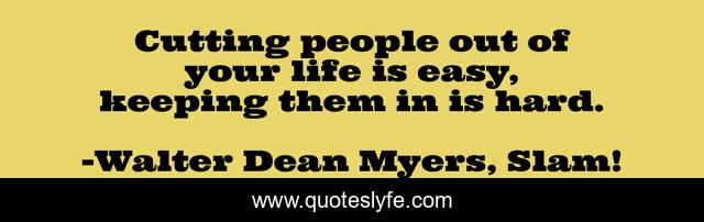 "Walter Dean Myers, Slam! Quotes." Quoteslyfe.com, 2025. Tue. 09 Dec. 2025. <https://www.quoteslyfe.com/quote/Cutting-people-out-of-your-life-is-50026>.