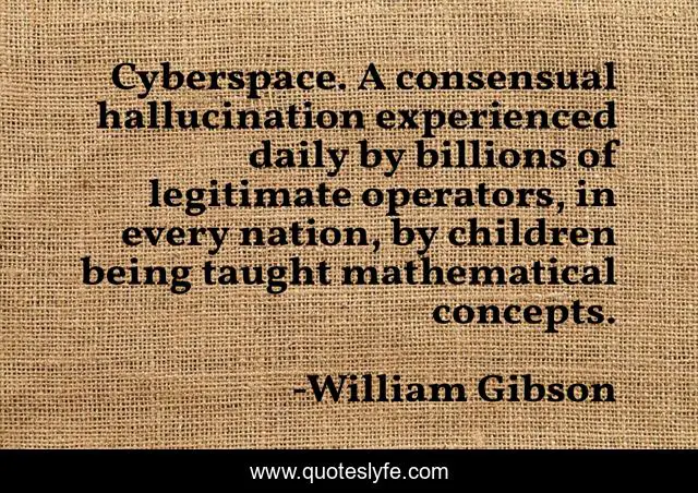 "William Gibson Quotes." Quoteslyfe.com, 2025. Sun. 07 Dec. 2025. <https://www.quoteslyfe.com/quote/Cyberspace-A-consensual-hallucination-experienced-daily-by-319754>.