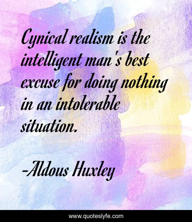 "Aldous Huxley Quotes." Quoteslyfe.com, 2025. Fri. 05 Dec. 2025. <https://www.quoteslyfe.com/quote/Cynical-realism-is-the-intelligent-man-s-303100>.