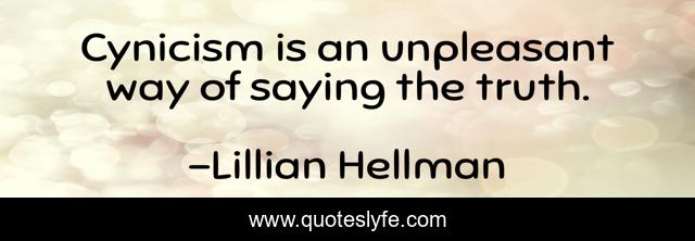 This page presents the quote "Cynicism is an unpleasant way of saying the truth.". Author of this quote is Lillian Hellman. .
