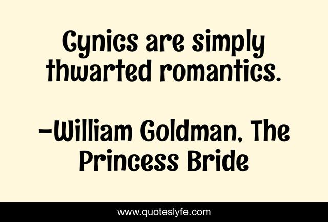"William Goldman, The Princess Bride Quotes." Quoteslyfe.com, 2025. Sat. 06 Dec. 2025. <https://www.quoteslyfe.com/quote/Cynics-are-simply-thwarted-romantics-2202>.