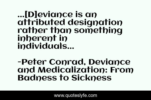 This page presents the quote "...[D]eviance is an attributed designation rather than something inherent in individuals...". Author of this quote is Peter Conrad, Deviance and Medicalization: From Badness to Sickness. .