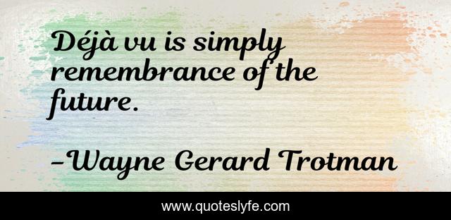 This page presents the quote "Déjà vu is simply remembrance of the future.". Author of this quote is Wayne Gerard Trotman. This quote is about remembrance, future, deja-vu, memory,.