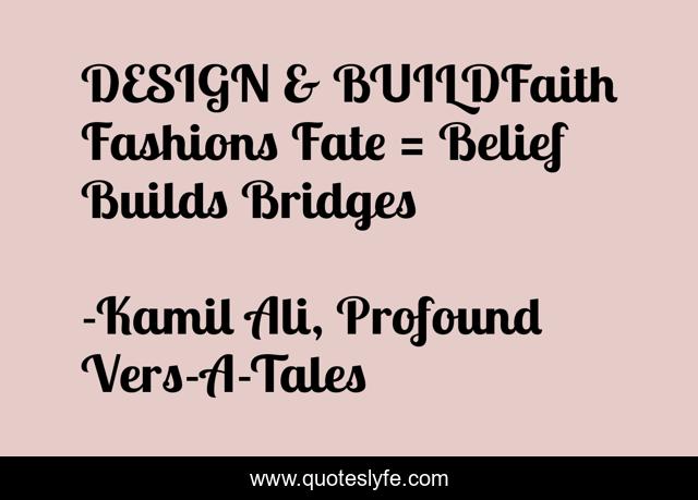 "Kamil Ali, Profound Vers-A-Tales Quotes." Quoteslyfe.com, 2025. Mon. 08 Dec. 2025. <https://www.quoteslyfe.com/quote/DESIGN-BUILDFaith-Fashions-Fate-Belief-Builds-Bridges-111474>.