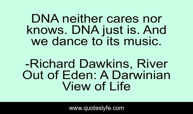 "Richard Dawkins, River Out of Eden: A Darwinian View of Life Quotes." Quoteslyfe.com, 2025. Mon. 08 Dec. 2025. <https://www.quoteslyfe.com/quote/DNA-neither-cares-nor-knows-DNA-just-41809>.