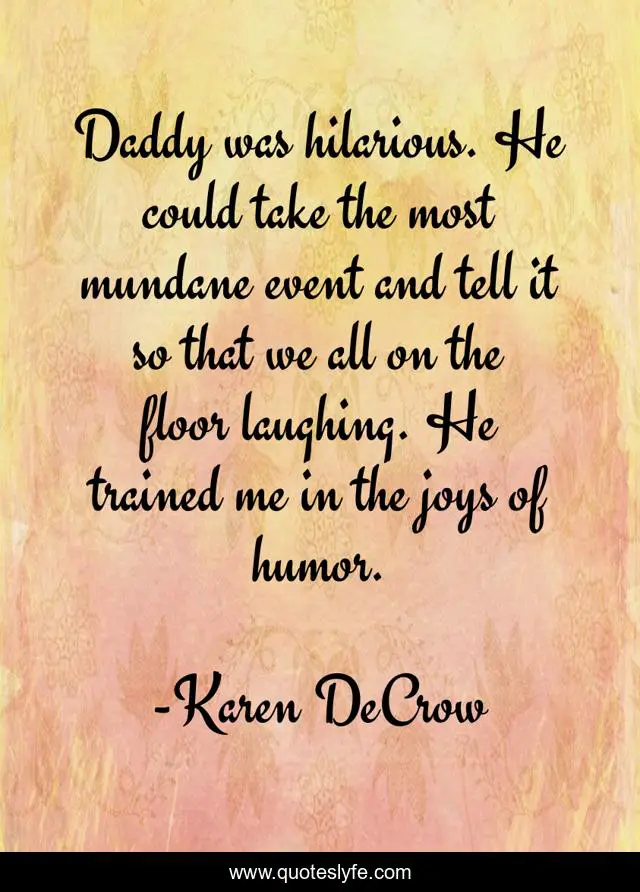 This page presents the quote "Daddy was hilarious. He could take the most mundane event and tell it so that we all on the floor laughing. He trained me in the joys of humor.". Author of this quote is Karen DeCrow. This quote is about me, event, floor,.