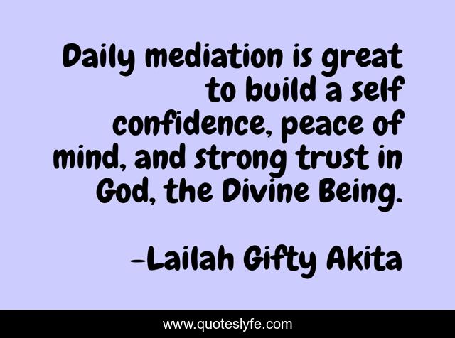 This page presents the quote "Daily mediation is great to build a self confidence, peace of mind, and strong trust in God, the Divine Being.". Author of this quote is Lailah Gifty Akita. This quote is about faith, inspiring, self-confident, christian, wellness, peace, daily-life, trust-in-god, meditation,.