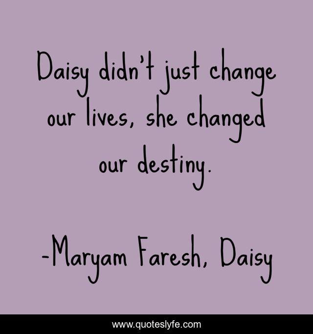 "Maryam Faresh, Daisy Quotes." Quoteslyfe.com, 2025. Mon. 08 Dec. 2025. <https://www.quoteslyfe.com/quote/Daisy-didn-t-just-change-our-lives-207468>.