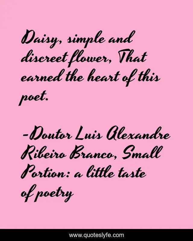 "Doutor Luis Alexandre Ribeiro Branco, Small Portion: a little taste of poetry Quotes." Quoteslyfe.com, 2025. Sun. 07 Dec. 2025. <https://www.quoteslyfe.com/quote/Daisy-simple-and-discreet-flower-That-earned-182337>.