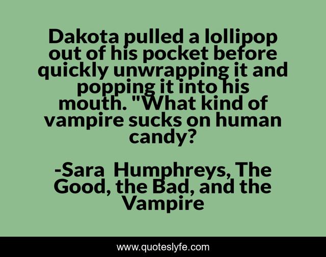This page presents the quote "Dakota pulled a lollipop out of his pocket before quickly unwrapping it and popping it into his mouth. "What kind of vampire sucks on human candy?". Author of this quote is Sara Humphreys, The Good, the Bad, and the Vampire. This quote is about gargoyles, cowboy-romance, urban-fantasy, vampire-romance, paranormal-romance,.