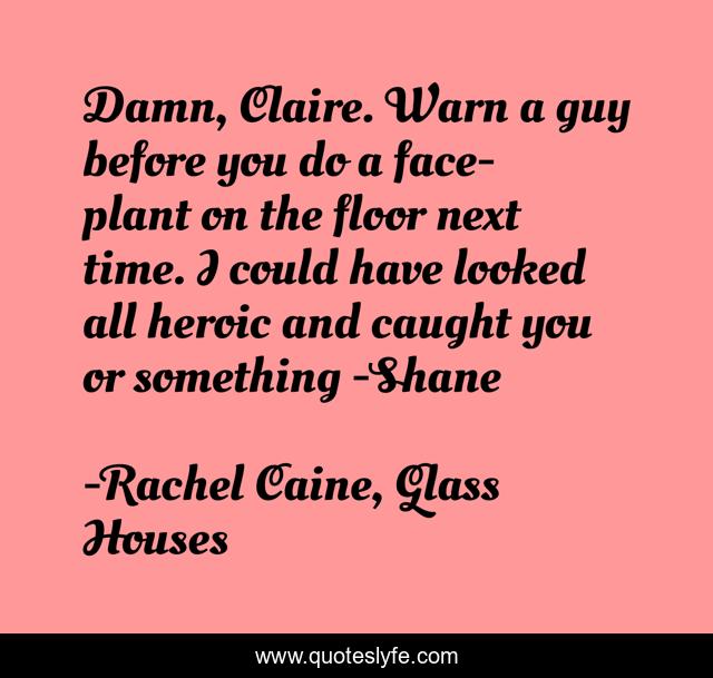 "Rachel Caine, Glass Houses Quotes." Quoteslyfe.com, 2025. Mon. 08 Dec. 2025. <https://www.quoteslyfe.com/quote/Damn-Claire-Warn-a-guy-before-you-40274>.
