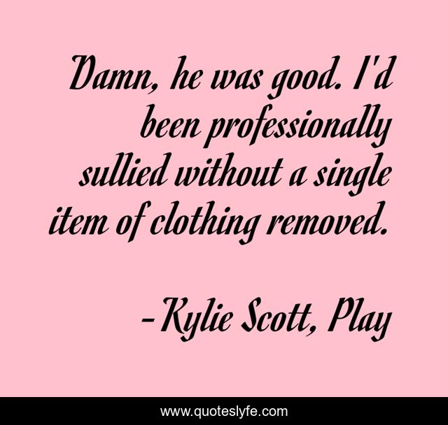 This page presents the quote "Damn, he was good. I'd been professionally sullied without a single item of clothing removed.". Author of this quote is Kylie Scott, Play. .